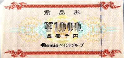 正式名称:ベイシア商品券,使用場所:ベイシアグループ各店舗 額 面:500円/1,000円 有効期限:なし おつり:出ます