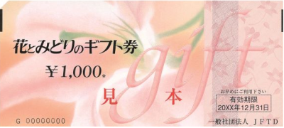 正式名称:花とみどりのギフト券 額面:500円、1,000円 有効期限:あります おつり:でません 使用場所:花と緑のギフト券加盟店でのみご利用頂けます。
